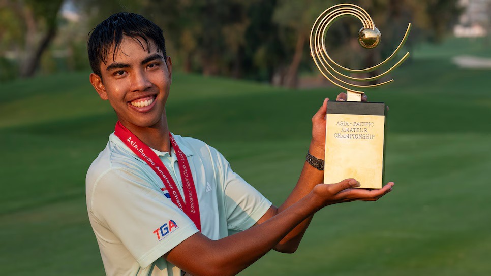 Pongsapak “Fifa” Laopakdee, de 20 años, remontó una desventaja de seis golpes con una ronda final de 68 (-4) y venció al japonés Taisei Nagasaki, de 16 años, en el tercer hoyo de desempate para ganar el Asia-Pacific Amateur Championship, lo que le aseguró invitaciones al Masters y al The Open Championship de 2026.