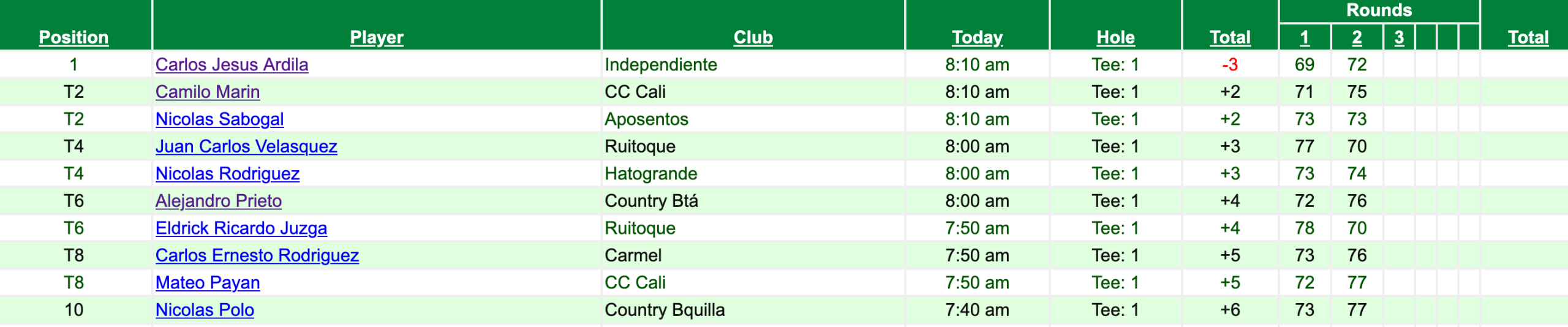 Para seguir todos los resultados en vivo del Abierto de Colombia 2025, haga clic aquí.