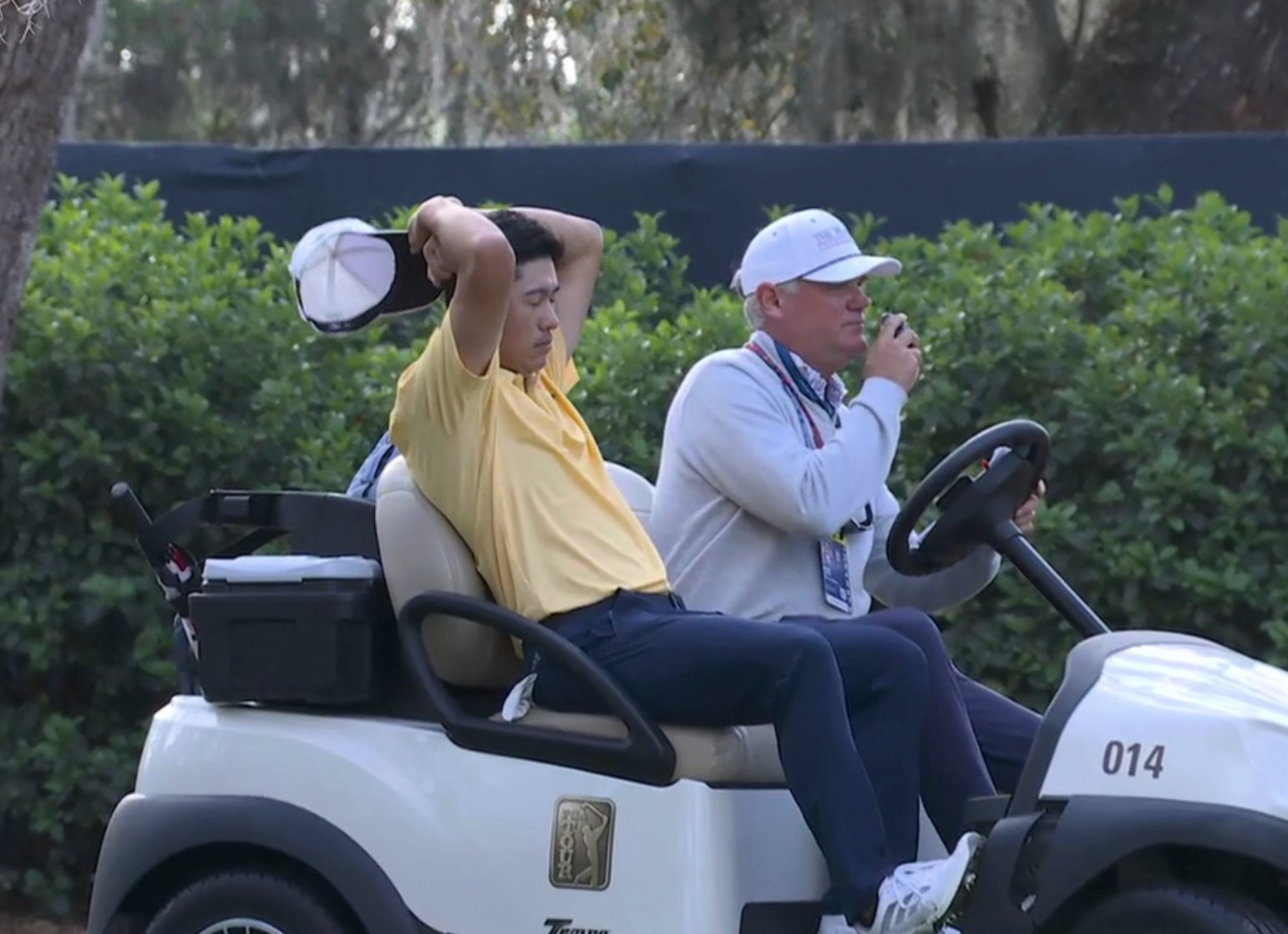 El golfista californiano, hizo un swing de práctica antes de arrancar por el hoyo 11 y justo ahí sintió la punzada que lo obligó a llamar a un vehículo para que lo revisaran y posteriormente lo llevaran a la casa club donde se reconfirmó su retiro de este importante torneo.