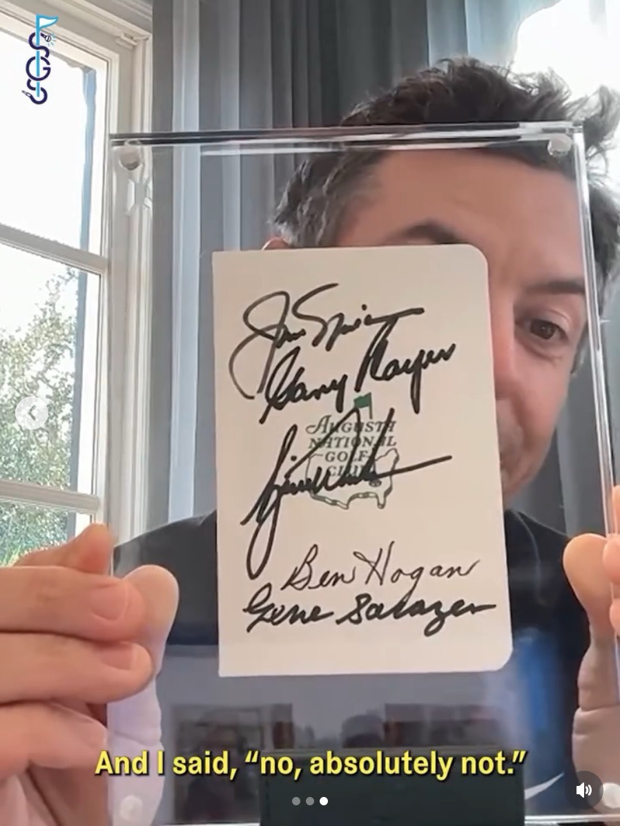 Durante su aparición en el podcast Shotgun Start, McIlroy mostró a los anfitriones una tarjeta de Augusta National firmada por todos los golfistas que antes habían conseguido el Grand Slam: Tiger Woods, Jack Nicklaus, Gary Player, Gene Sarazen y Ben Hogan, que son los otros cinco hombres que han conseguido esa hazaña antes que él.